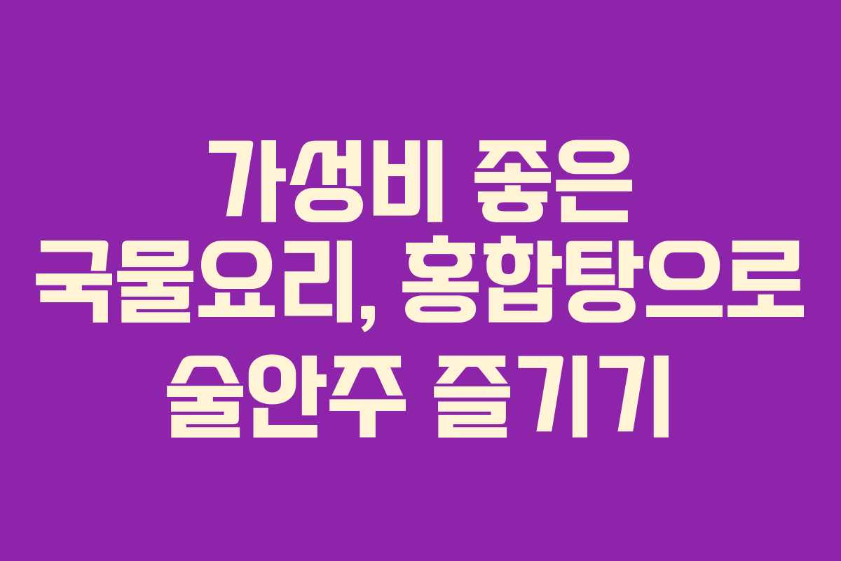 연말 모임이 어려운 요즘, 집에서 간단하게 술안주를 만들어 즐기는 방법을 소개합니다. 오늘은 12월 제철 해산물인 홍합을 활용한 ‘홍합탕’ 레시피를 통해 가성비 좋은 국물요리를 만들어보겠습니다.
