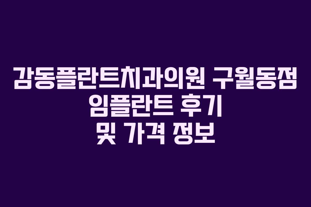 치과 선택은 매우 중요한 과정으로, 인천 구월동에 위치한 감동플란트치과의원에 대한 정보와 후기를 정리해보았습니다. 이 병원은 임플란트 치료를 포함한 다양한 구강 치료 서비스를 제공하고 있으며, 환자들의 경험을 통해 신뢰성을 높이고 있습니다.