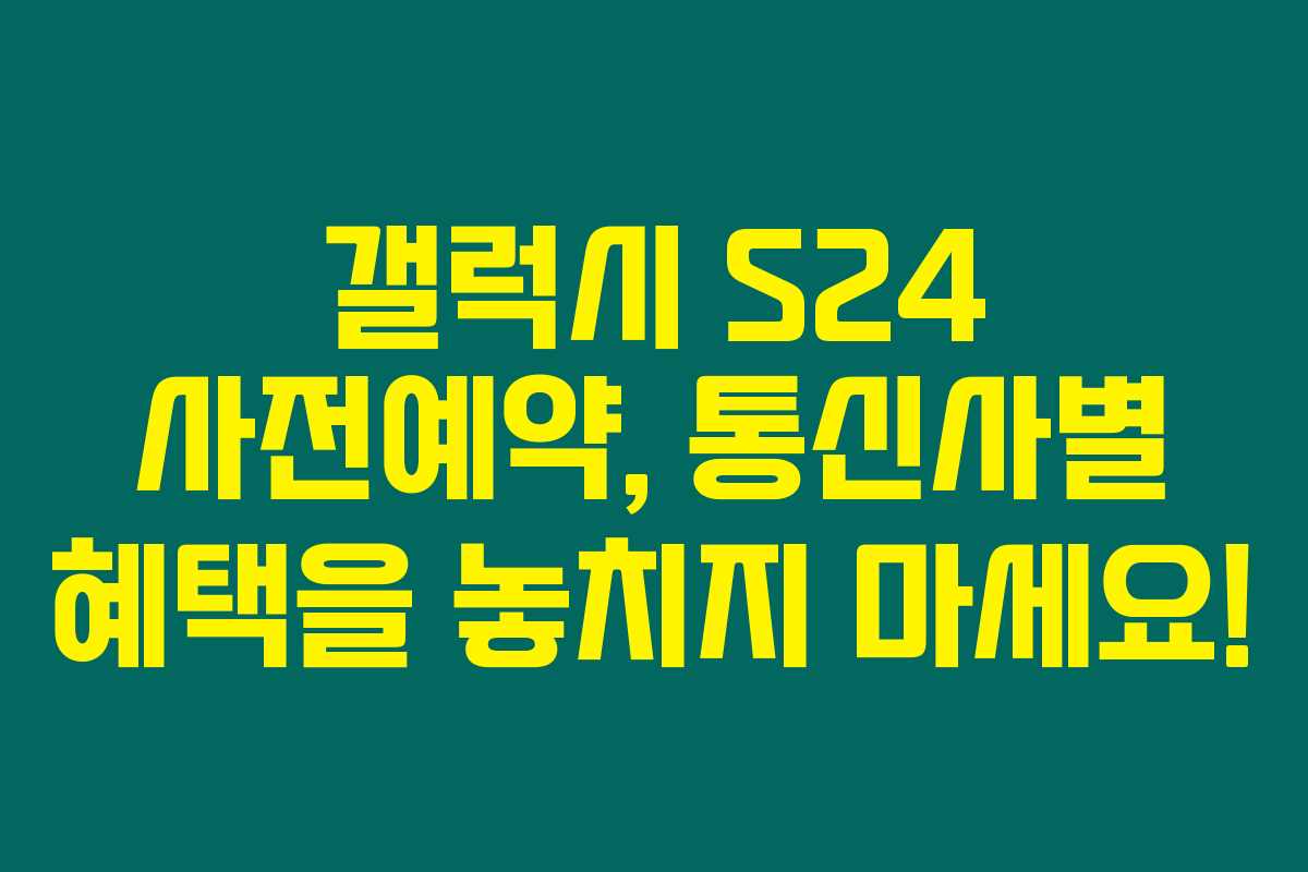 제가 직접 체크해본 바로는, 갤럭시 S24의 사전예약 기간 동안 이통 3사인 SKT, KT, LGU+에서 제공하는 다양한 혜택이 매우 매력적입니다. 이번 글에서는 각 통신사별로 마련한 특별한 프로모션 및 경품을 안내드리니, 아래를 읽어보시면 갤럭시 S24를 더욱 풍성하게 즐길 수 있는 방법을 알 수 있을 것입니다.