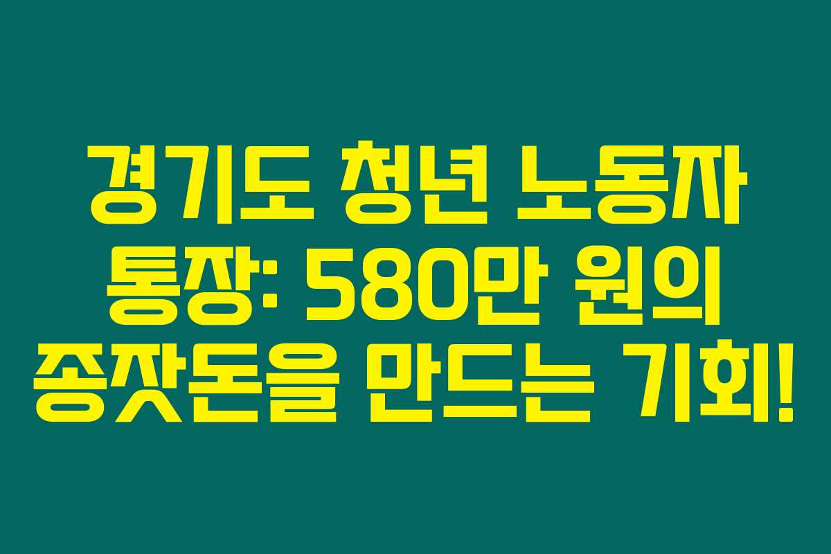 경기도 청년에 해당되신다면 정말 놓치면 안 될 기회가 시작됐어요! 경기도 청년 노동자 통장이 접수가 시작되었습니다. 이 프로그램은 경기도에서 근무 중인 청년들이 매월 10만 원씩 2년간 저축하면, 만기 시 경기도에서 지원받는 금액까지 포함하여 총 580만 원을 돌려주는 혜택이랍니다. 그렇다면 구체적으로 어떤 조건과 절차가 있는지 자세히 알아보아요!