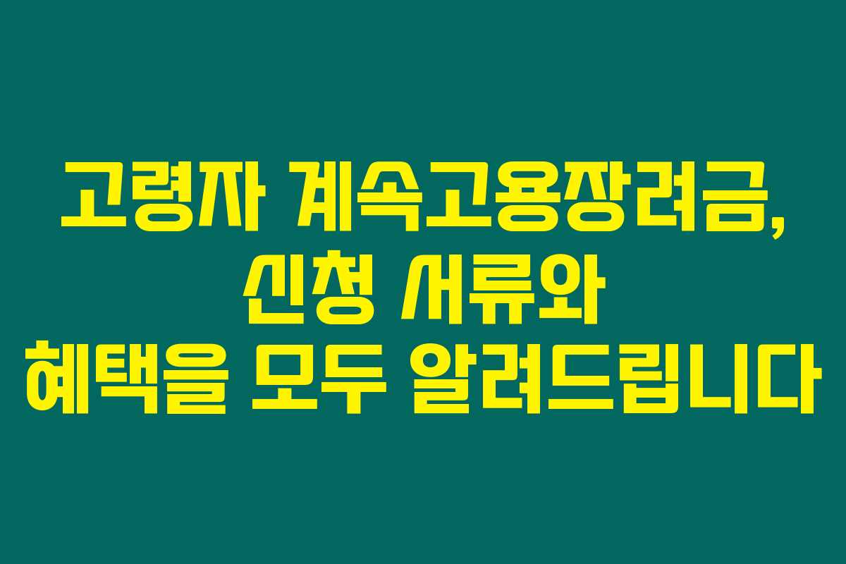 고령자 계속고용장려금, 신청 서류와 혜택을 모두 알려드립니다