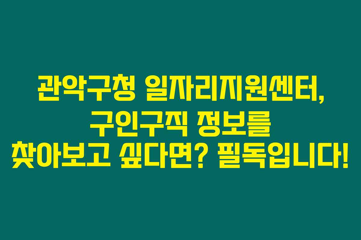 구인구직 정보는 관악구청 홈페이지 또는 다양한 구인구직 웹사이트에서 확인할 수 있습니다. 직접 센터를 방문해 정보를 얻는 것도 추천해요.