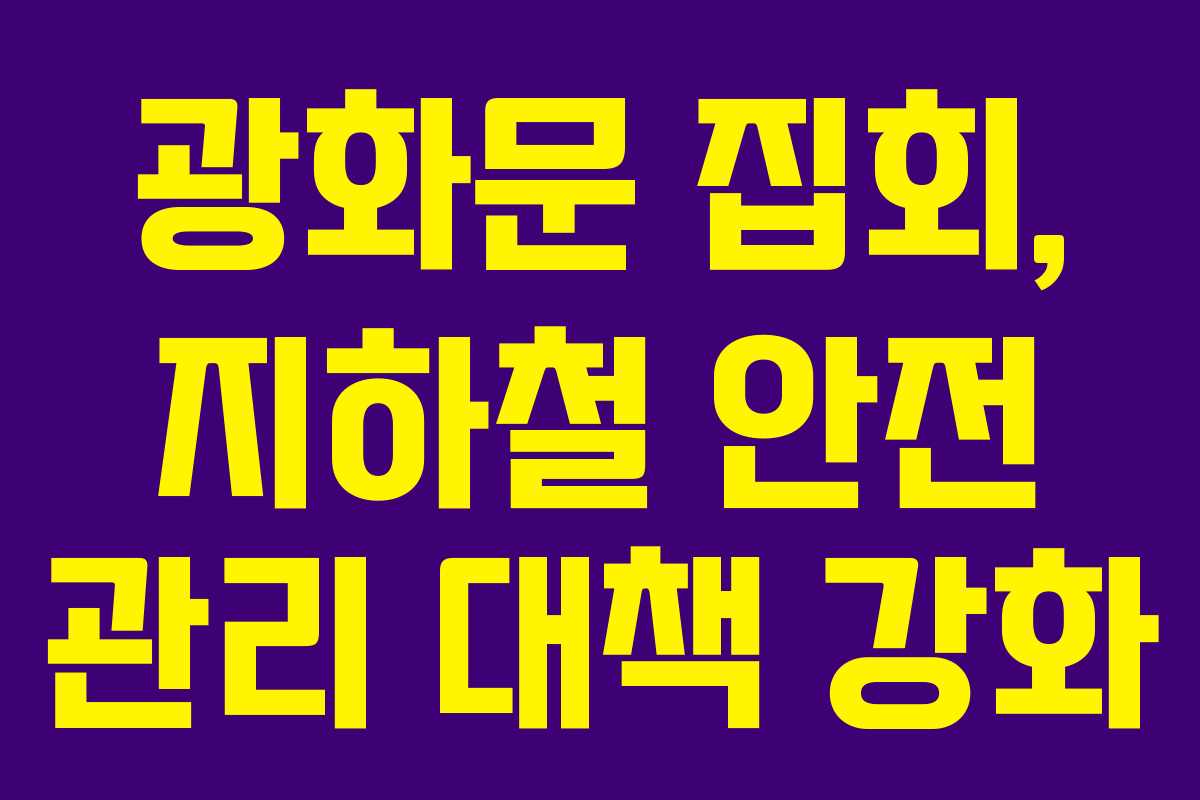 광화문에서 열리는 대규모 집회로 인해 시민 안전을 위한 지하철 안전 관리 대책이 강화됩니다. 주요 지하철역의 무정차 통과 및 인파 관리 방안이 마련되어 있어, 시민들의 안전을 최우선으로 고려하고 있습니다.