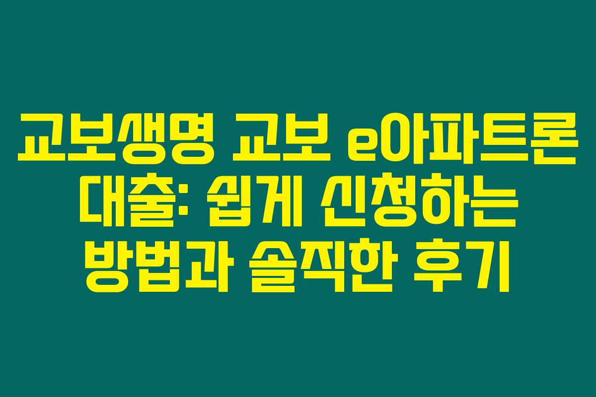 제가 직접 경험해본 결과로는, 교보생명의 교보 e아파트론 대출은 주택담보대출로 아파트를 담보로 필요한 자금을 쉽게 대출받을 수 있는 상품이에요. 담보 대출이라고 하면 조금 복잡하게 느껴질 수 있지만, 이해하기 쉽게 정리해드릴게요. 아래를 읽어보시면 대출 신청 방법부터 후기까지 자세히 알게 될 거예요.