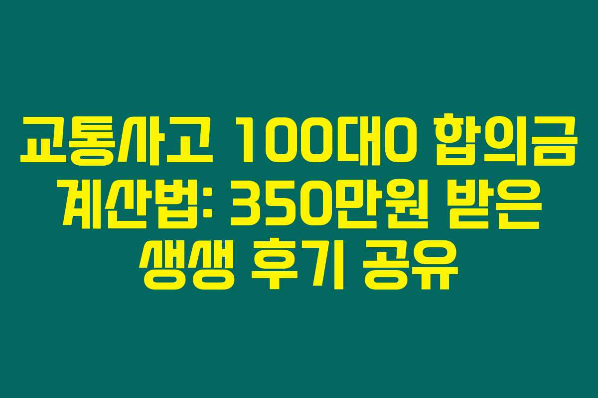 교통사고로 인한 합의금에 대한 고민을 하고 계신가요? 만약 여러분도 교통사고 100대0 합의금을 계산하려고 하신다면, 다음 내용을 주목해 주세요. 많은 이들이 놓치는 부분과 실질적인 합의금 계산법을 포함해 교통사고 경험에서 얻은 유용한 팁을 전달해드릴게요.