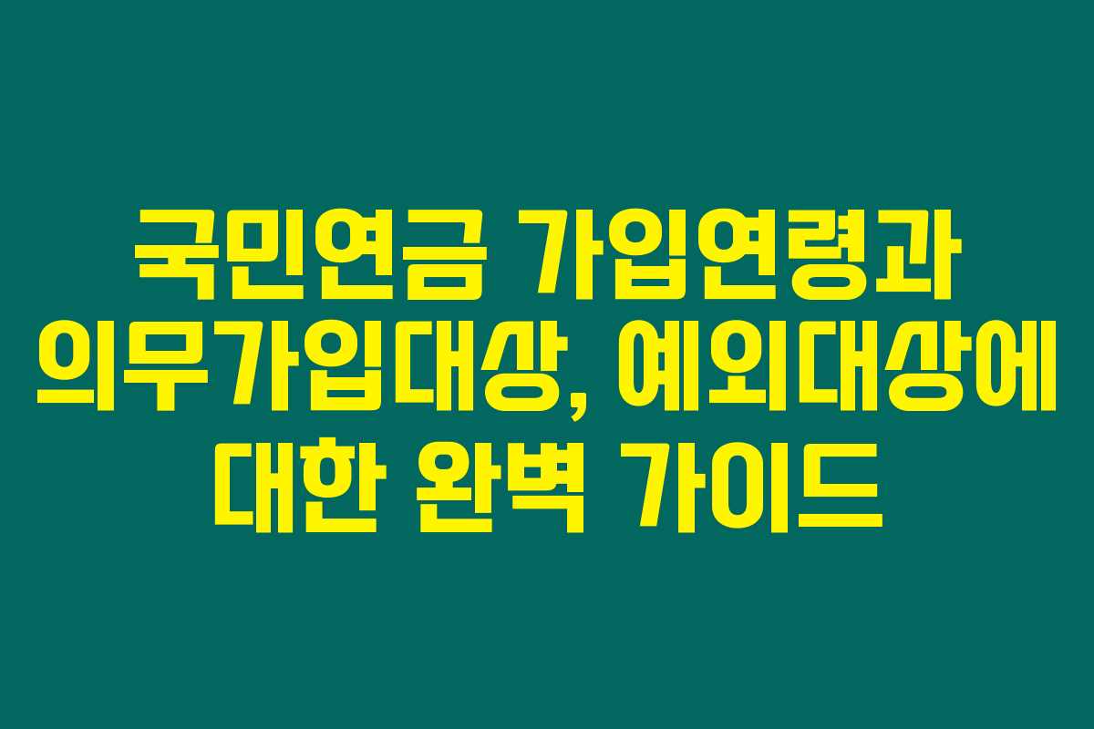 제가 직접 체크해본 바로는 국민연금에 대한 이해는 요즘 젊은 세대뿐만 아니라, 중장년층에게도 꼭 필요한 정보랍니다. 특히 국민연금 가입연령, 의무가입대상, 가입제외대상에 대해 명확히 알고 계신가요? 이 정보를 알고 있으면 퇴직 후 발생할 수 있는 여러 불이익을 예방할 수 있습니다. 아래를 읽어보시면 국민연금에 대한 모든 궁금증을 해소하실 수 있을 거예요.