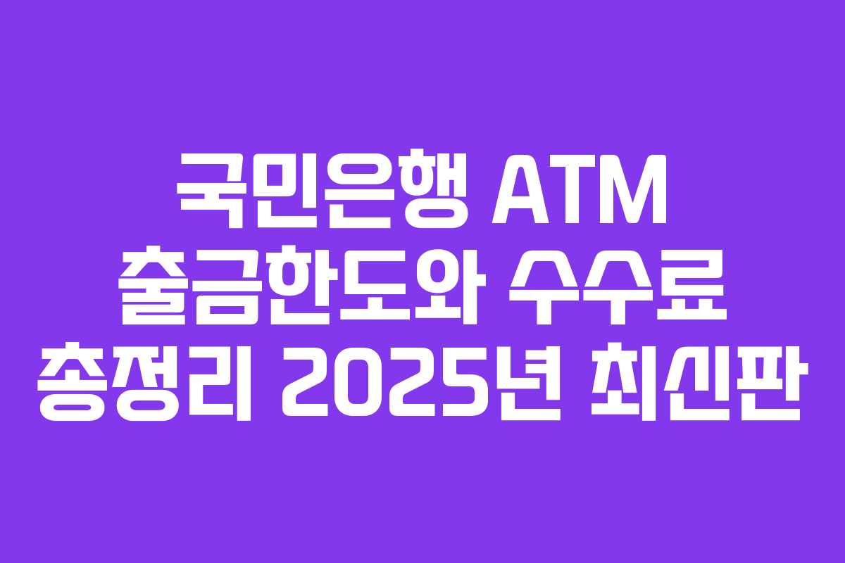 국민은행 ATM 출금한도와 수수료 총정리 2025년 최신판