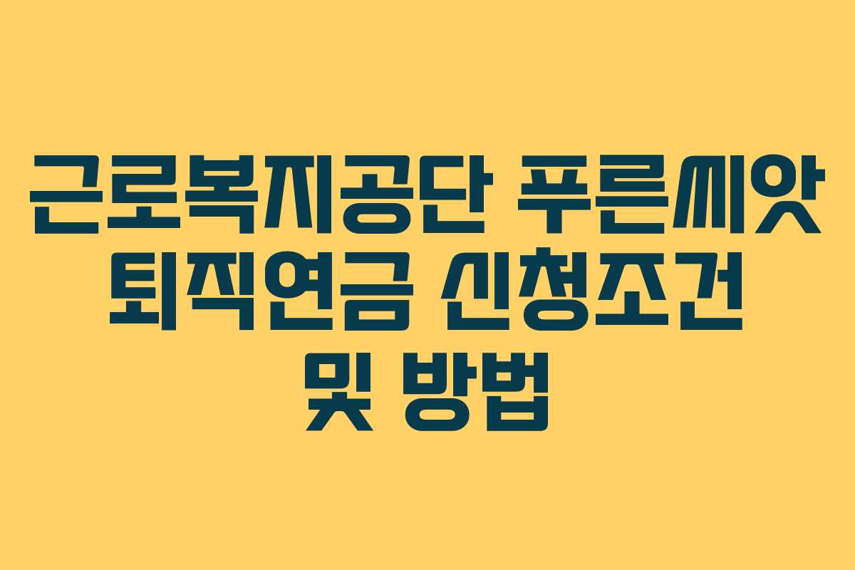 푸른씨앗 퇴직연금은 근로복지공단의 공식 웹사이트를 통해 신청할 수 있으며, 사업주와 직원의 동의가 필요합니다.