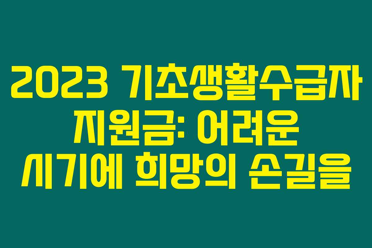 2023년 기초생활수급자 지원금 혜택과 신청 방법에 대해 더 알아보시고, 필요한 지원을 꼭 받으세요!