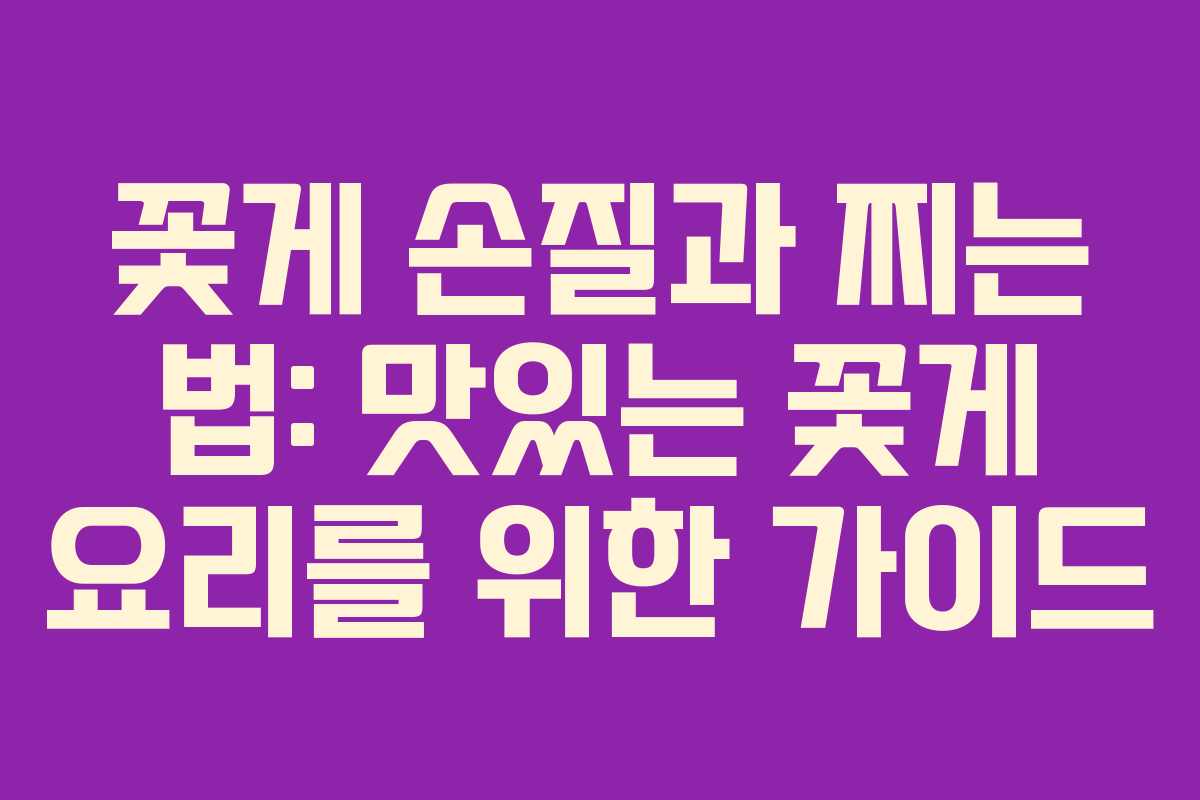 꽃게 손질 시에는 반드시 똥을 제거해야 하며, 손질 후에는 깨끗이 씻어야 합니다.