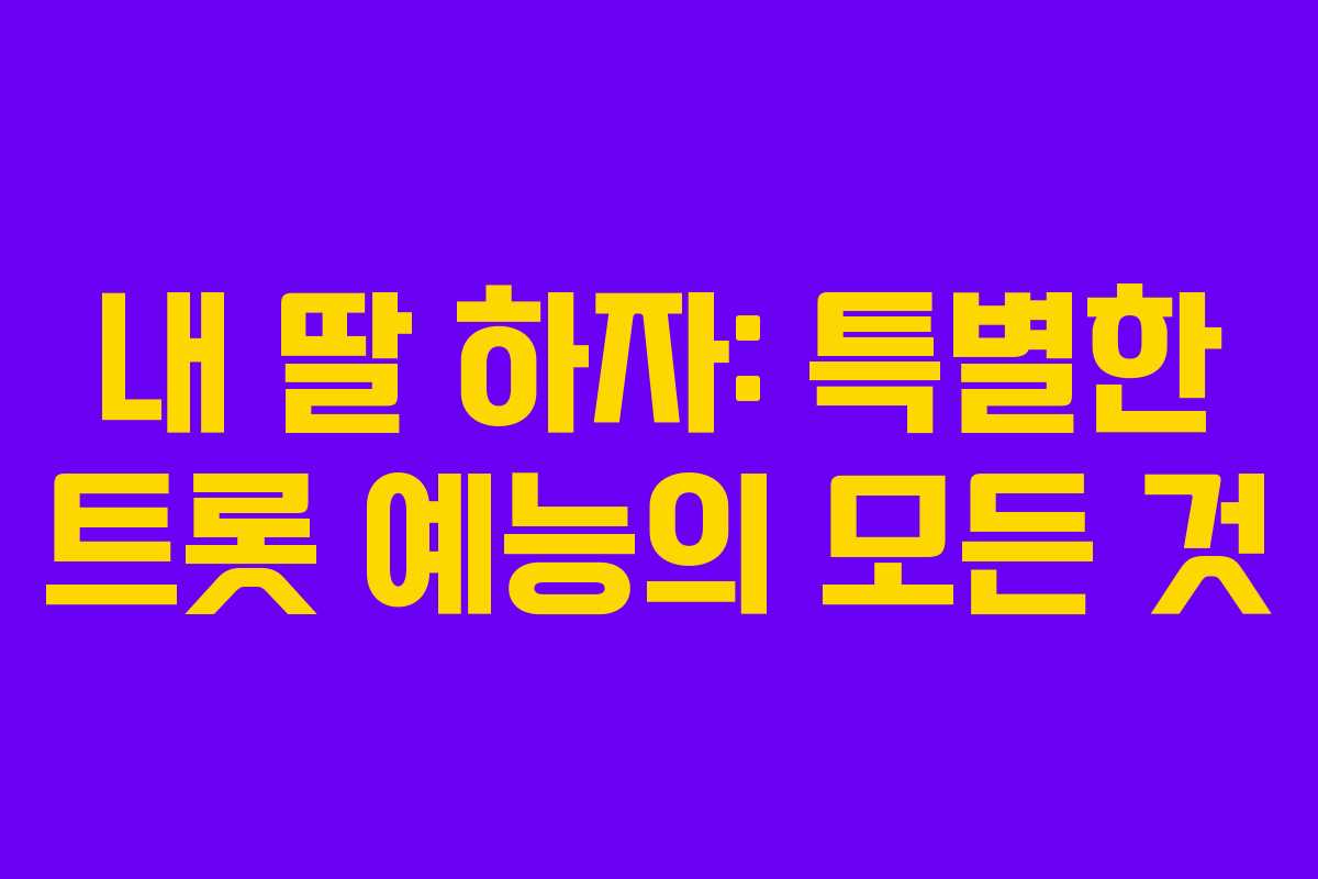 ‘내 딸 하자’는 대한민국의 TV조선에서 방영된 트롯 예능 프로그램으로, 대중에게 큰 사랑을 받았습니다. 이 프로그램은 ‘미스트롯2’의 TOP7이 특별한 사연을 가진 부모님들을 찾아가 노래 서비스를 제공하는 컨셉으로 진행되었습니다.