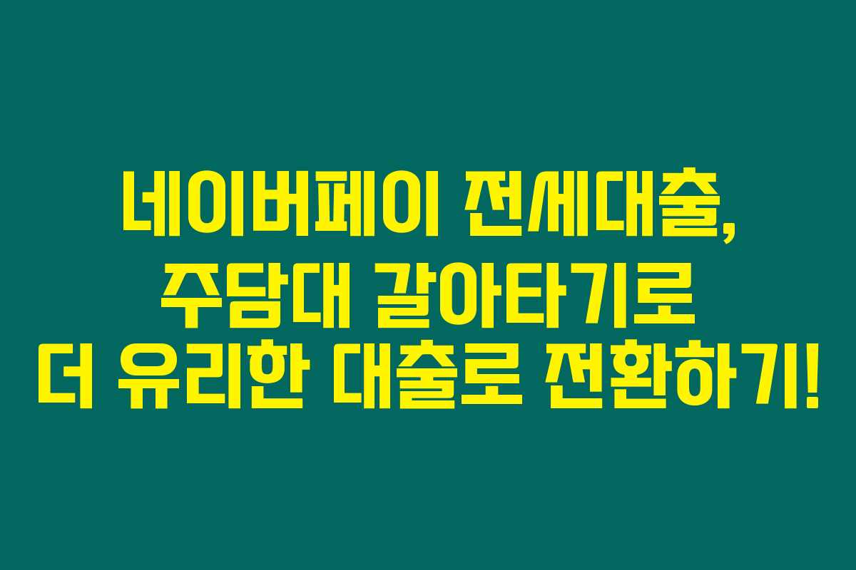제가 알아본 바로는 최근 네이버페이에서 주택담보대출(주담대)과 전세대출의 갈아타기 서비스를 시작했습니다. 이 서비스를 이용하면 더 낮은 금리로 대출을 받을 수 있어 대출 부담을 줄일 수 있는 좋은 기회입니다. 아래를 읽어보시면, 신청 방법 및 대상, 한도에 대해 자세히 이해하실 수 있을 거예요.
