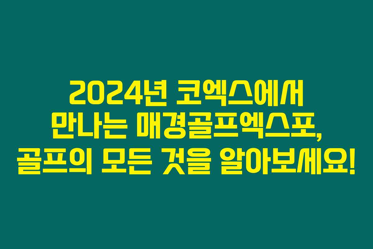 2024년 4월 18일부터 21일까지 서울 코엑스에서 열리는 매경골프엑스포! 골프 매니아는 물론 초보자에게도 다양한 골프 관련 제품과 체험 기회를 제공하는 이 박람회를 놓치지 마세요. 최신 골프 기어부터 레슨 정보까지! 아래를 읽어보시면, 여러분이 이 행사에서 꼭 알아야 할 필수 정보가 가득하답니다.