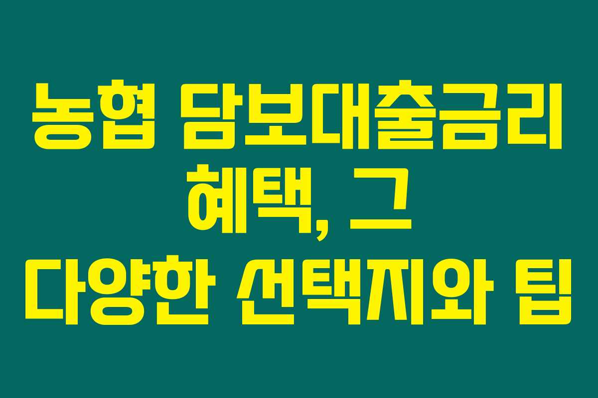 제가 조사해본 결과, 농협 담보대출금리는 여러 요인에 따라 달라지는데요, 이를 알아보면 더욱 효과적인 대출을 받을 수 있습니다.