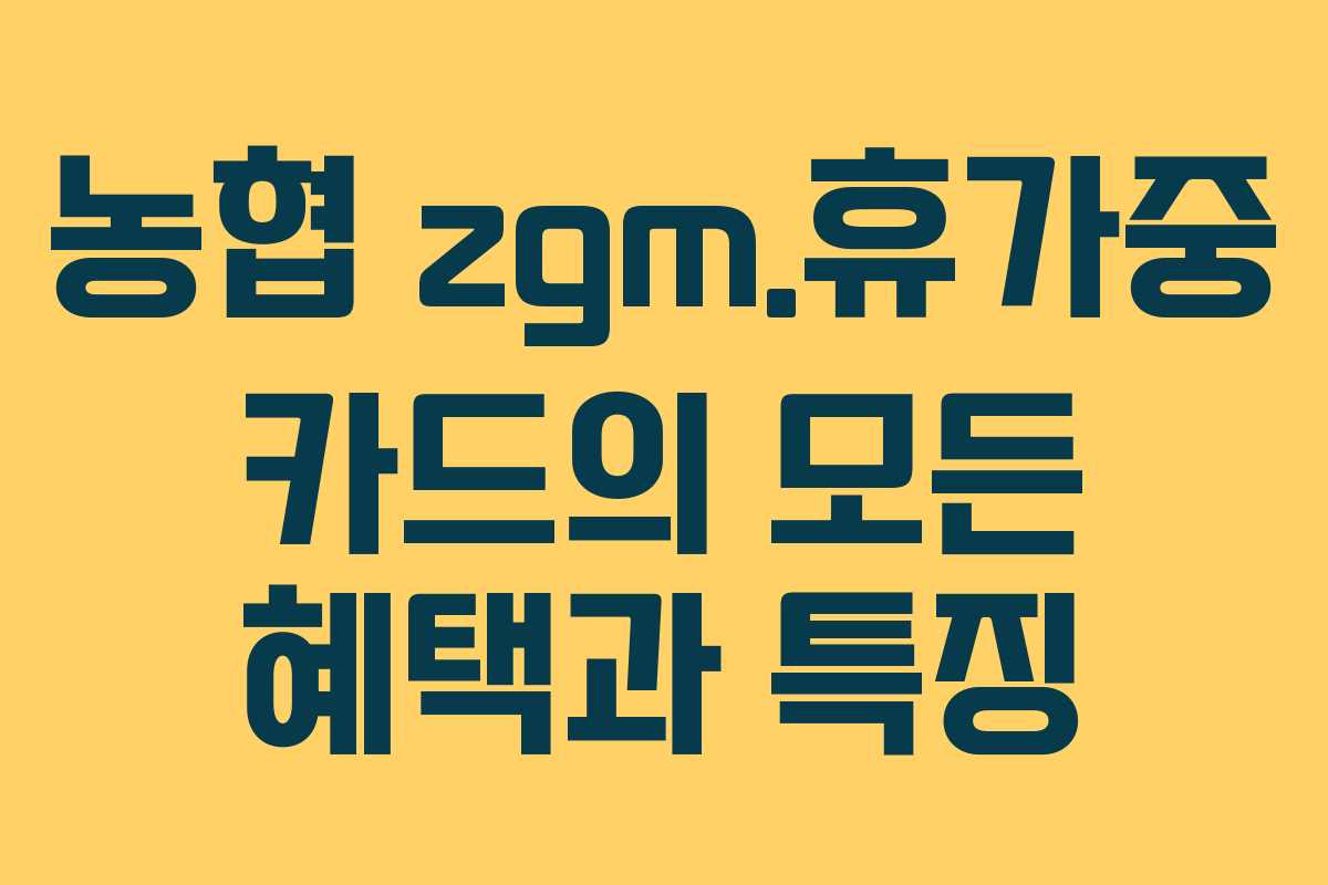 농협 zgm.휴가중 카드는 해외여행을 자주 다니는 분들에게 매우 유용한 카드입니다. 다양한 혜택을 제공하므로 여행을 계획 중이라면 고려해보시기 바랍니다.