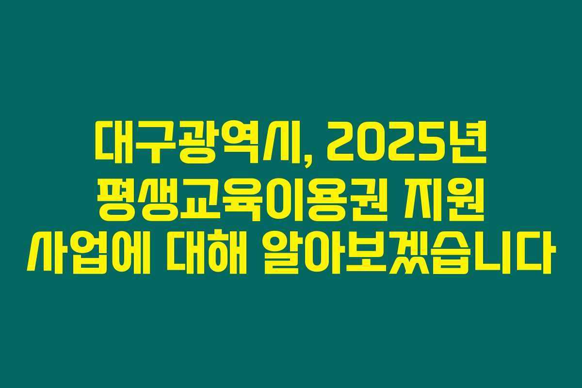 제가 알아본 바로는, 대구광역시는 2025년을 맞아 시민의 평생교육 참여 기회를 확대하기 위해 ‘평생교육이용권 지원 사업’을 시행한다고 해요. 이 사업은 경제적 여건이나 사회적 지위에 따른 교육의 격차를 줄이고, 모두에게 평생학습의 기회를 제공하여 삶의 질을 개선하려는 목적을 갖고 있답니다. 아래를 읽어보시면, 이 사업의 구체적인 내용과 모집 정보에 대해 알아볼 수 있으니 함께 살펴보아요!