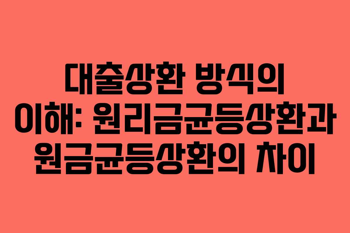 대출을 사용하는 많은 사람들이 대출 상환 방식을 선택할 때 고민을 많이 합니다. 대출 상환 방식은 총 이자 비용과 월 상환액에 큰 영향을 미치기 때문에, 자신의 상황에 맞는 방식 선택이 필요합니다. 이번 글에서는 대출상환 방식의 종류와 원리금균등상환, 원금균등상환의 차이점에 대해 자세히 알아보겠습니다.