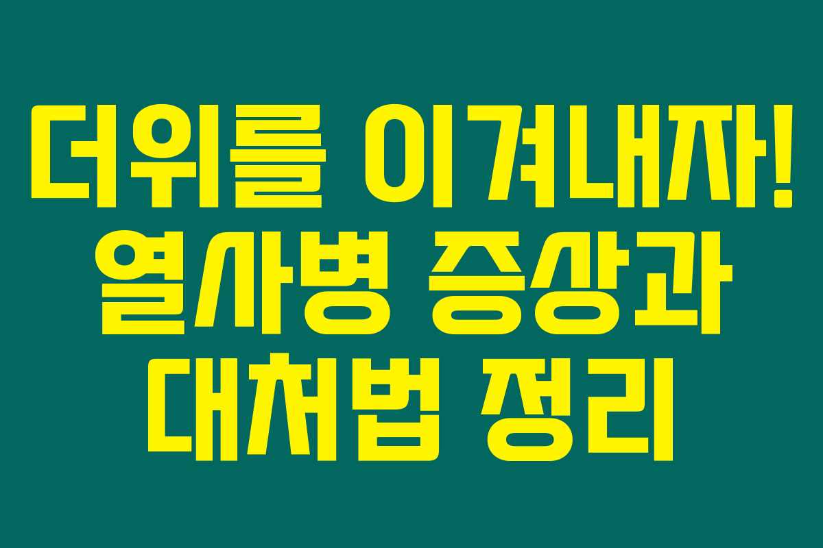 열사병은 정말 위험한 질병으로 심하면 생명까지 위협할 수 있답니다. 알고 보면 아주 간단한 예방법과 대처 방법들이 있으니 아래를 읽어보시면 많은 도움이 될 거예요.