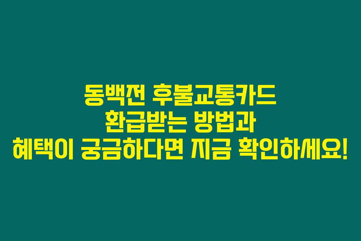 대중교통비를 월 최대 45,000원이나 환급받고 싶다면 꼭 동백전 후불교통카드 혜택을 알아봐야 합니다. 부산에서 생활하는 사람들이라면 많은 경우 대중교통을 이용하기 때문에 이 환급 제도를 통하면 경제적으로 도움이 됩니다. 아래를 읽어보시면 동백전 후불교통카드의 구체적인 혜택과 환급 신청 방법을 파악할 수 있습니다.