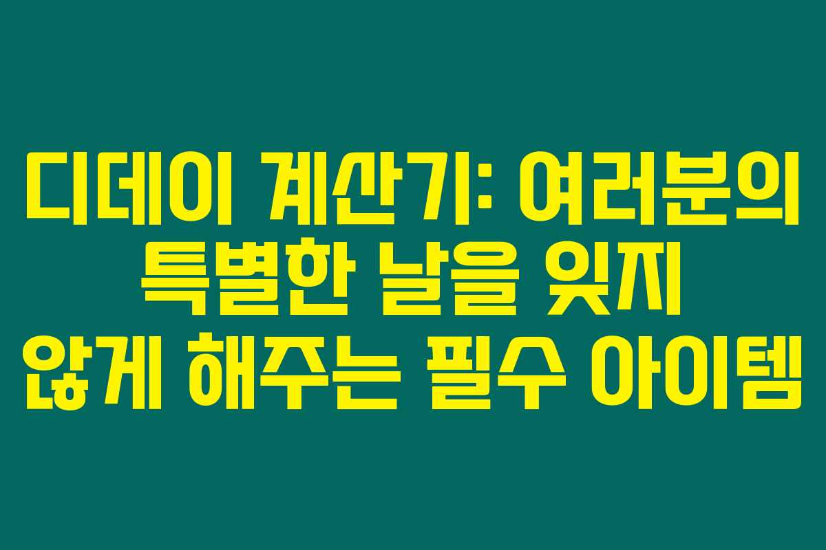 여러분은 기념일이나 특별한 이벤트를 잊은 적 있으신가요? 사랑하는 사람과의 기념일 절대 잊지 마세요! 디데이 계산기가 여러분의 소중한 날짜를 쉽게 계산해줄 수 있어요. 아래를 읽어보시면, 직관적인 사용법과 함께 특별한 일정 관리의 노하우를 소개할게요.