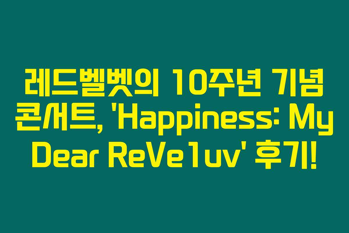 레드벨벳의 ‘Happiness: My Dear ReVe1uv’ 콘서트는 그들이 10년간의 여정을 함께한 팬들에게 정말 특별한 순간을 만들어주었답니다. 이런 기회를 놓치지 말고 그들의 재능과 매력을 느껴보세요.
