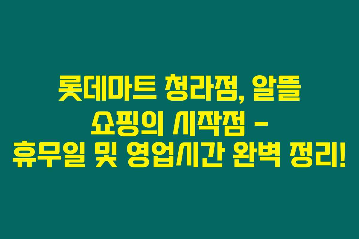 롯데마트 청라점은 언제 휴무일인지 아는 것이 중요해요. 여러분이 쇼핑을 계획할 때 도움이 될 만한 정보를 정리했어요.