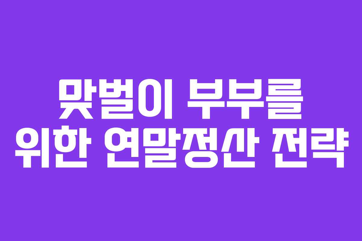 연말정산은 맞벌이 부부에게 중요한 세금 관리 포인트입니다. 국세청에서는 연말정산 미리보기 서비스를 제공하여 부부가 함께 소비 전략을 세울 수 있도록 돕고 있습니다. 이 글에서는 연말정산의 절차와 전략을 자세히 살펴보겠습니다.