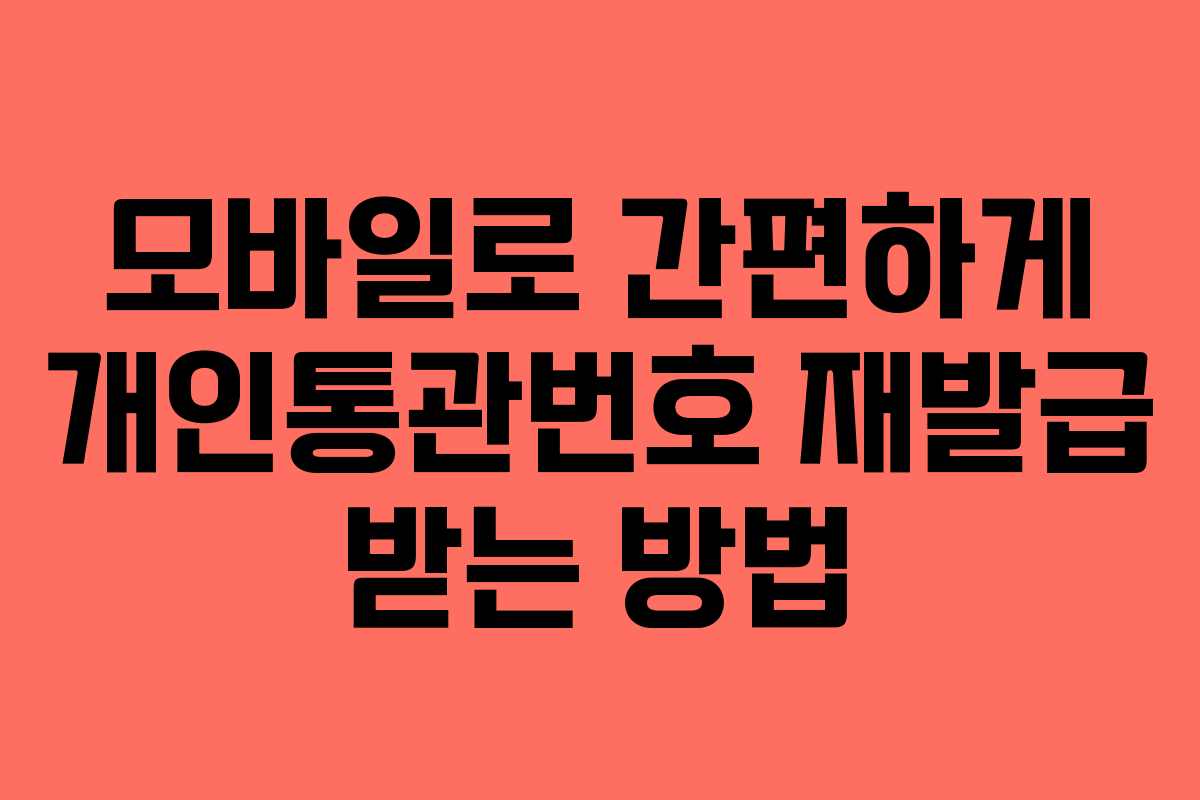 해외직구를 자주 이용하는 분들에게 필수인 개인통관번호는 본인을 식별하는 중요한 정보입니다. 최근 개인정보 유출 사건으로 많은 이들이 개인통관번호 재발급에 관심을 가지게 되었습니다. 다행히도 관세청 유니패스를 통해 모바일에서도 쉽게 재발급 받을 수 있는 방법이 있습니다.