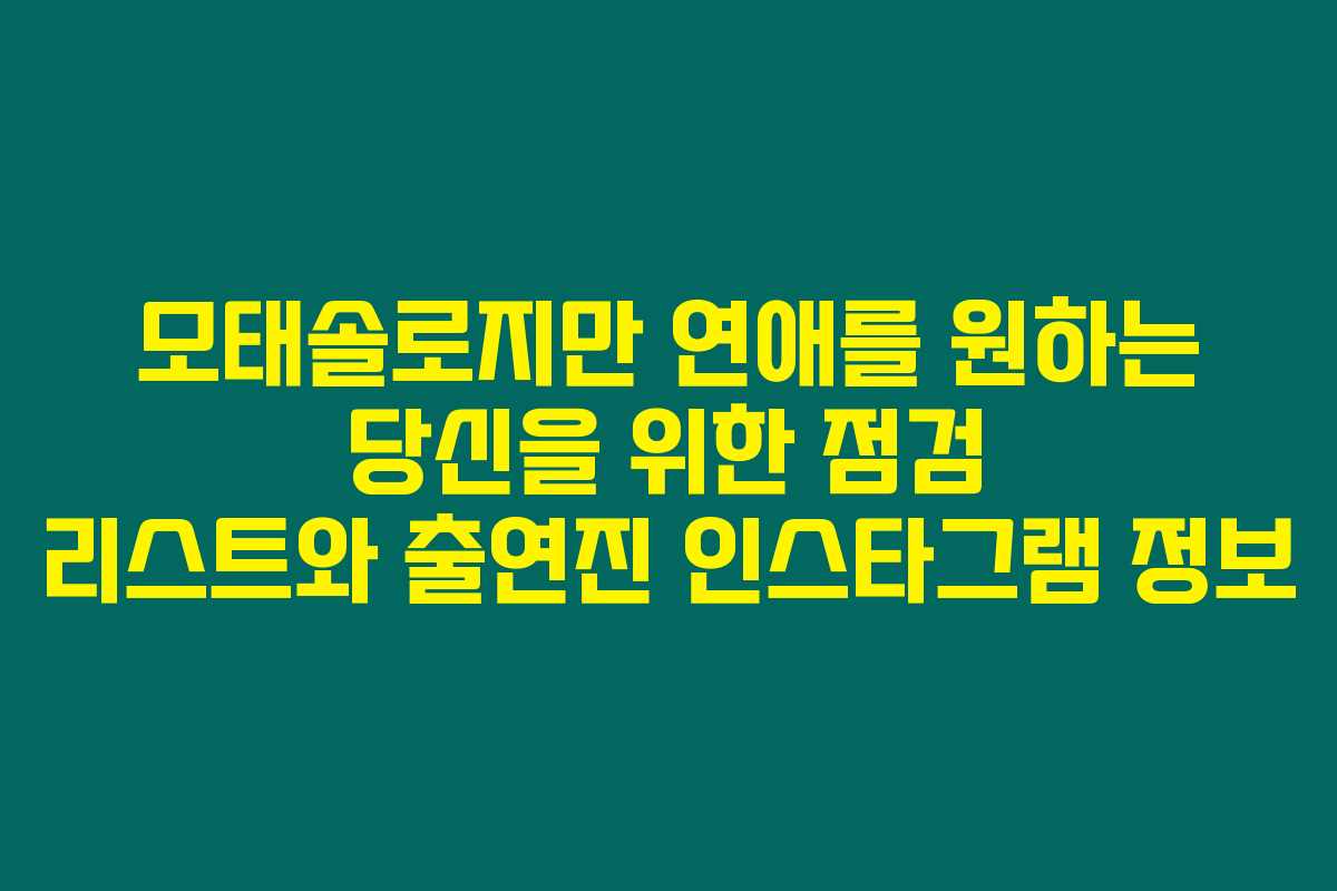 연애를 못한 사람이라면 누구나 궁금할 법한 질문이죠? “모태솔로지만 연애는 하고 싶어”라는 프로그램이 많은 화제를 모으고 있는데요. 이 프로그램은 연애 경험이 전혀 없는 20대와 30대 청춘들이 자신의 첫사랑을 체험해가는 과정을 담아내고 있답니다. 만약 당신이 연애를 하고 싶다면 이 프로그램을 보면서 어떤 도움을 받을 수 있을지 궁금하지 않으세요? 아래를 읽어보시면 출연진 인스타그램 정보와 함께 더 많은 팁을 알려드릴게요!