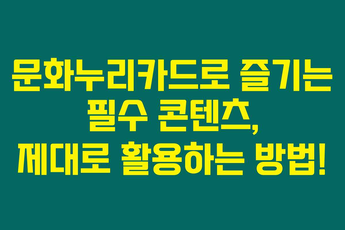 이번 2023 문화누리카드를 통해 다양한 문화 콘텐츠를 더욱 즐겁게 즐길 수 있는 방법에 대해 알아보았어요. 제가 직접 경험해본 결과로는 많은 혜택이 제공되니, 꼭 활용해보시길 바랍니다.
