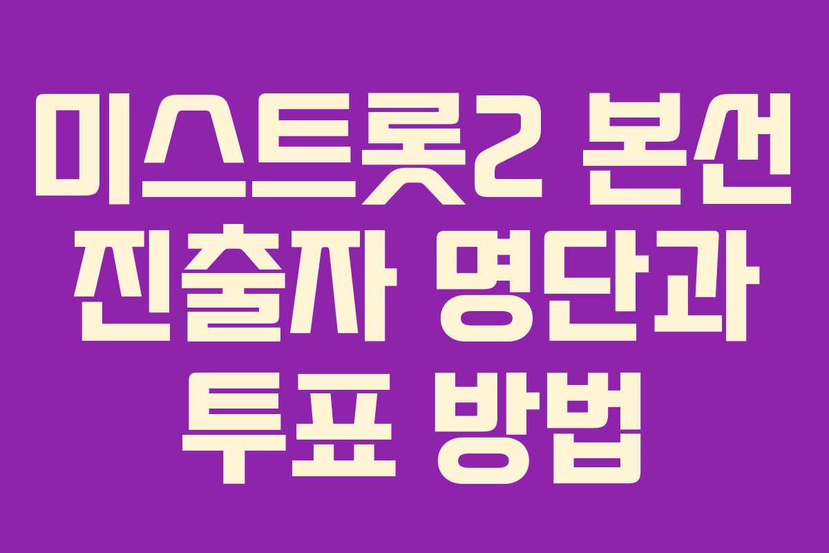 현재 미스트롯2의 본선 진출자들이 확정된 가운데, 팬들은 인기 투표에 참여할 수 있습니다. 이 투표는 참가자들에게 큰 힘이 되며, 심사에도 영향을 미칠 수 있습니다. 아래는 투표 방법입니다.