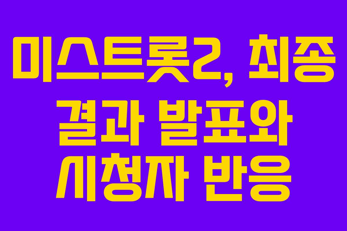 지난 4일 방송된 TV조선의 ‘미스트롯2’가 최종 결과를 발표하며, 35.2%의 시청률을 기록했습니다. 많은 트로트 팬들 사이에서 큰 화제가 되고 있습니다.