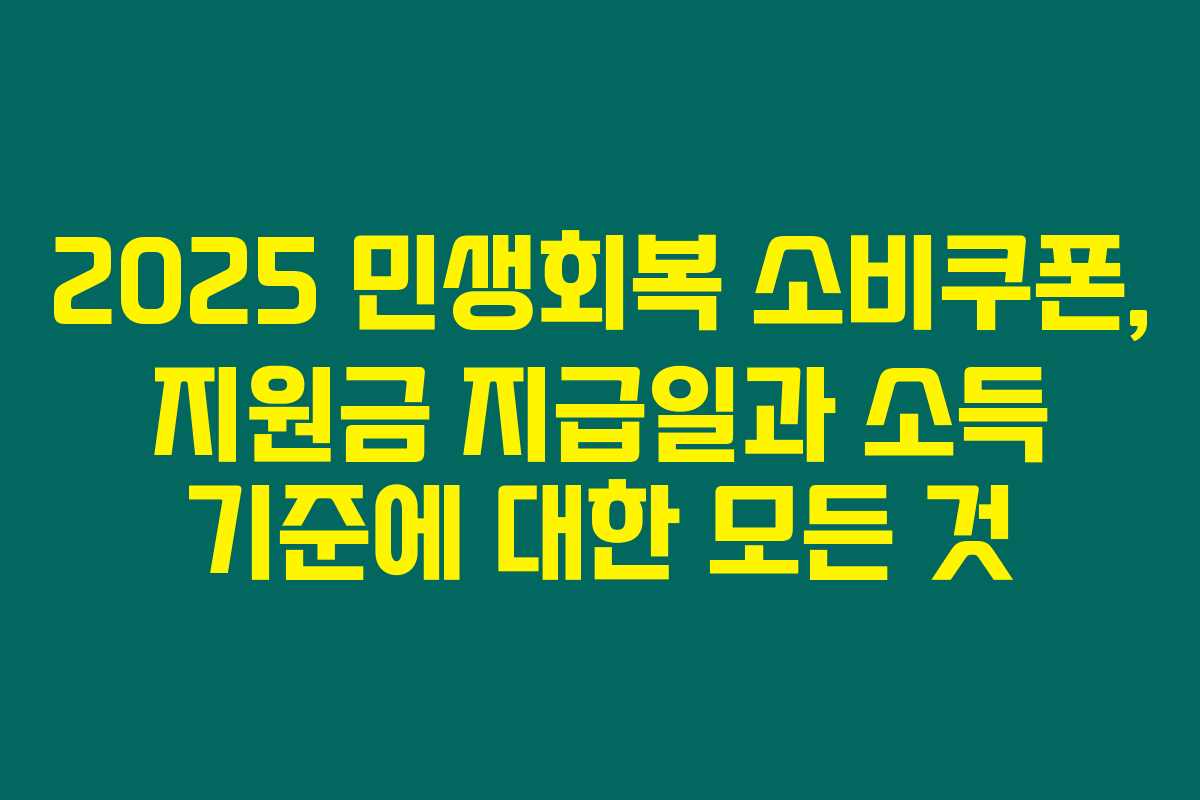 2025년 민생회복 소비쿠폰에 대한 정보를 요약하면, 지급일, 소득 기준 및 최대 지원금에 대한 내용을 확인하고 준비하는 것이 중요하답니다. 52만 원이라는 혜택을 놓치지 마시고, 효율적으로 활용해 보세요.