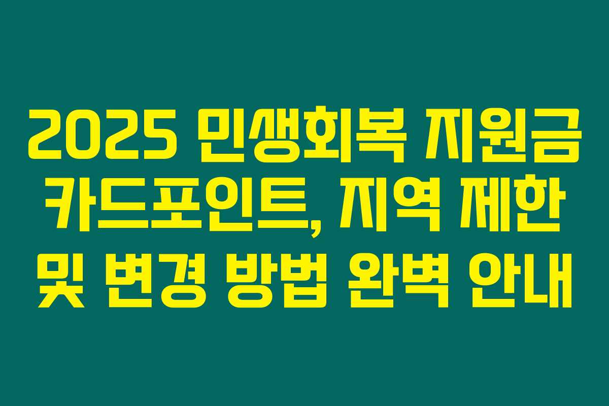 2025년 민생회복 지원금 카드포인트를 받으셨나요? 만약 당신이 지역 제한 때문에 고민하고 있다면, 아래를 읽어보시면 유용한 정보가 가득해요. 지역 제한과 변경 신청 방법에 대해 자세히 알아보도록 하겠습니다.