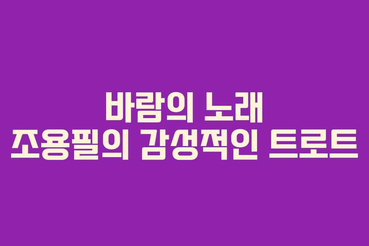 조용필의 ‘바람의 노래’ 외에도 다양한 트로트 곡들이 있습니다. 아래는 몇 가지 추천 곡입니다.