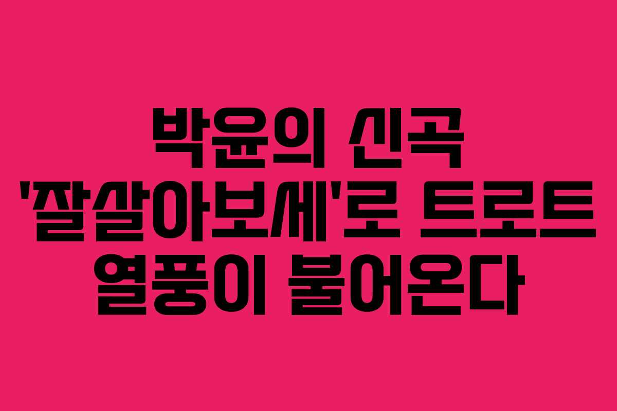 2019년 6월 26일, 박윤의 신곡 ‘잘살아보세’가 모든 음원 서비스에 공식 발매되었습니다. 이 곡은 발매와 동시에 트로트 최신 차트에서 1위를 차지하며 많은 이들의 주목을 받았습니다. 특히, 멜론에서 57%의 점유율을 자랑하는 트로트 홈 메인에서 대표 앨범으로 소개되며, 트로트 최신곡 1위로 선정되었습니다.