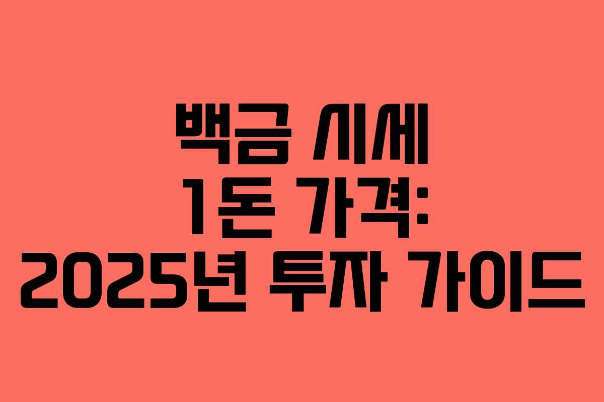 백금 시세 1돈 가격: 2025년 투자 가이드
