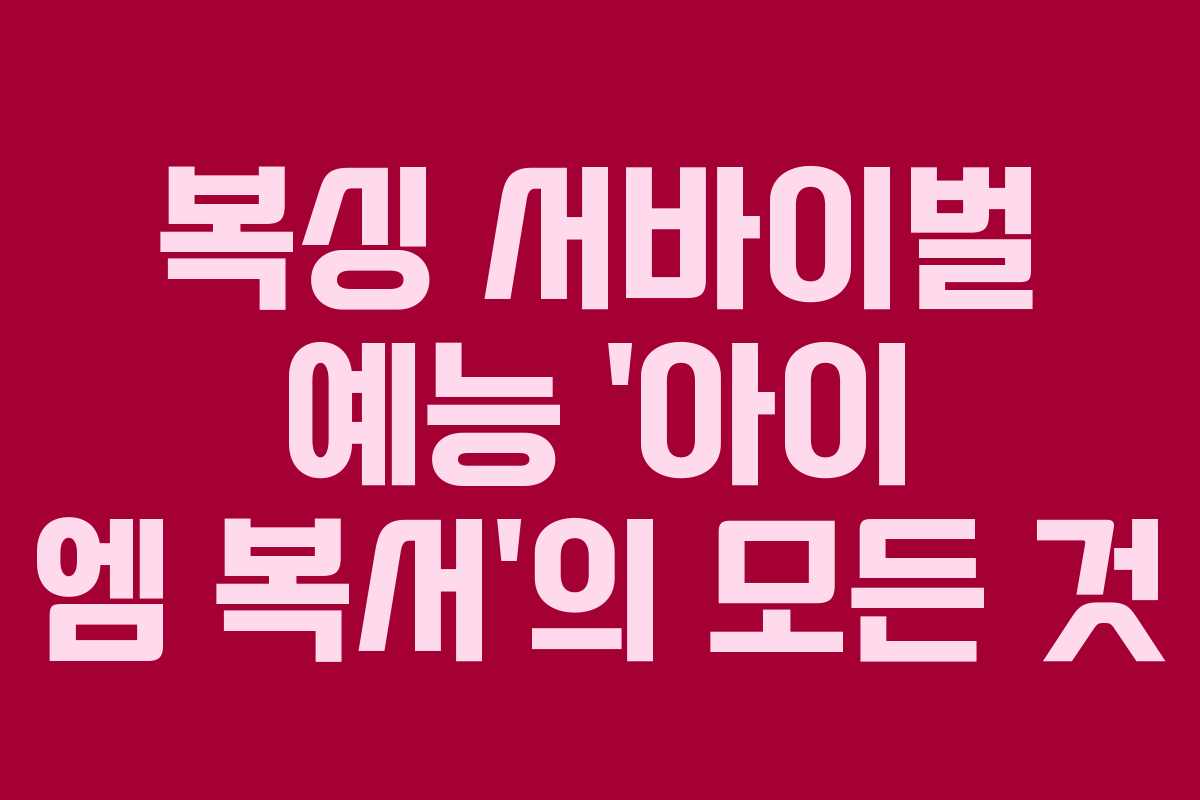 ‘아이 엠 복서’는 복싱 서바이벌 형식의 예능으로, 다양한 배경을 가진 복서들이 경합하는 프로그램입니다.