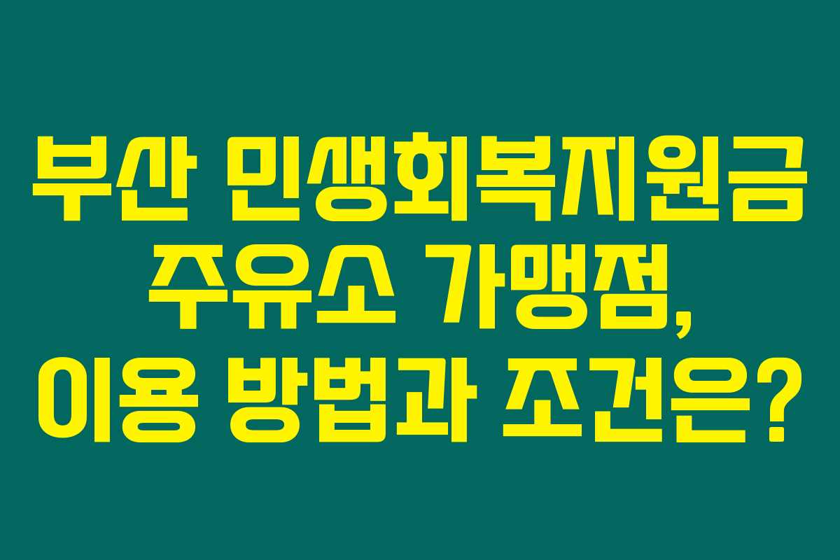 부산 민생회복지원금 주유소 가맹점, 이용 방법과 조건은?