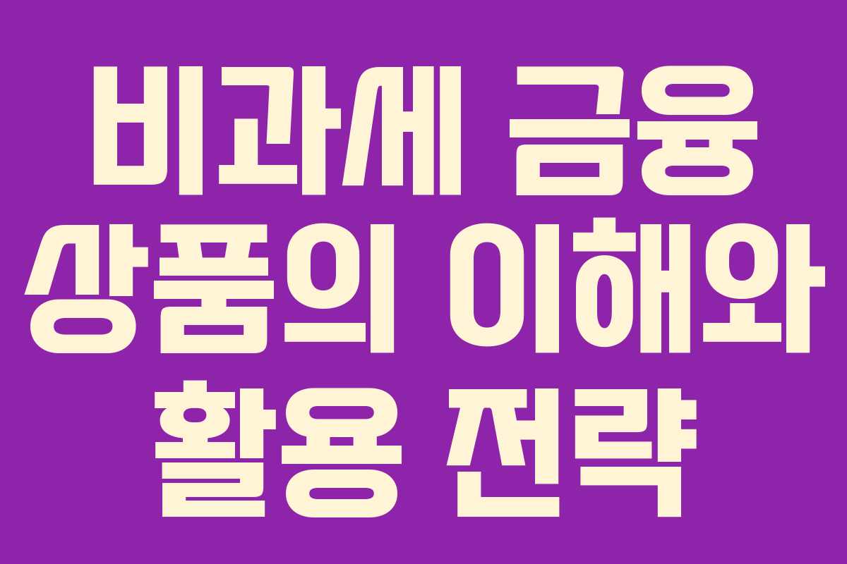 비과세 상품은 세금 부담을 줄이고, 안전하게 자산을 운용할 수 있는 방법입니다.