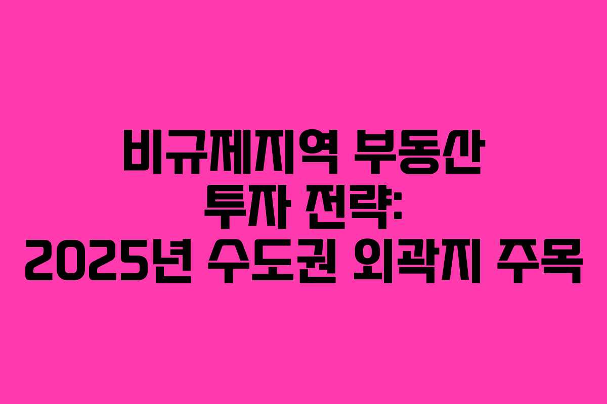 2025년 부동산 시장은 비규제지역에 대한 관심이 높아지고 있습니다. 특히 수도권 외곽지역이 조정대상지역에서 해제됨에 따라 투자자들에게 기회의 장이 열리고 있습니다.