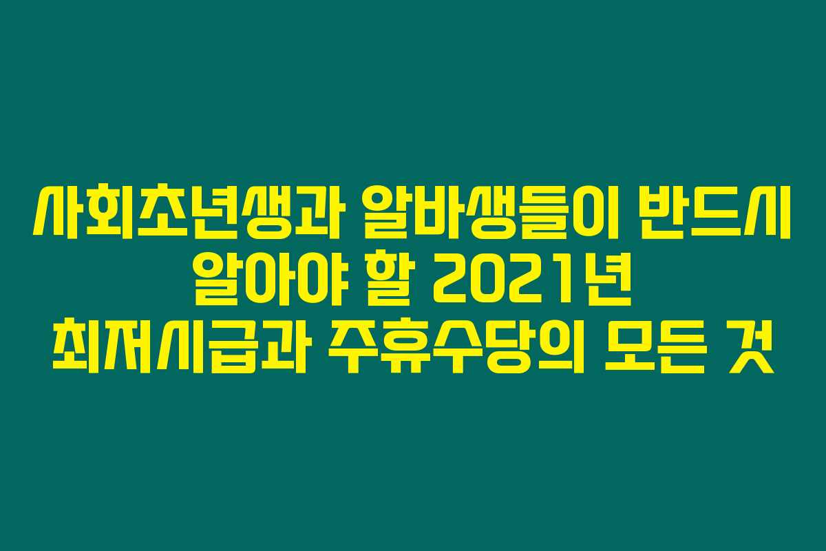 제가 직접 체크해본 바로는, 사회초년생과 알바생들이 2021년에 알아야 할 최저시급, 최저임금, 그리고 주휴수당에 대한 정보가 매우 중요하답니다. 많은 사람들이 공통적으로 궁금해하는 내용이기도 하지요. 아래를 읽어보시면, 이 주제에 대한 기본적인 이해를 도울 수 있는 유용한 정보가 담겨 있답니다.
