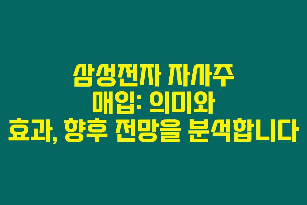 삼성전자의 자사주 매입이 결정되었다는 소식에 많은 이들이 관심을 가질 수밖에 없어욥. 만약 삼성전자 주식에 관심이 있거나, 자사주 매입이 주가에 미치는 영향을 궁금해 한다면, 아래를 읽어보시면 여러 가지 유익한 정보를 얻을 수 있답니다. 자사주 매입이 왜 중요한지, 삼성전자의 주식 시장에서 어떤 변수를 만들어낼지에 대해 함께 알아봐요.