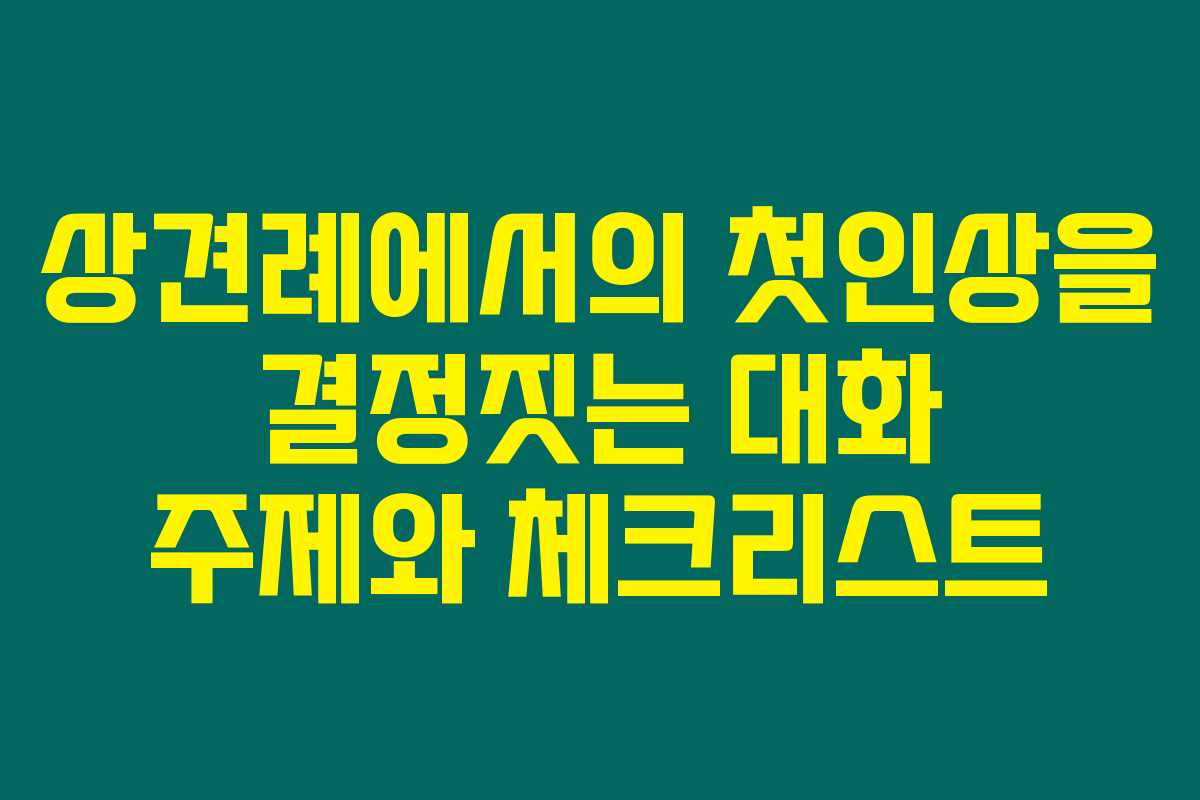 결혼을 앞두고 진행하는 중요한 상견례는 많은 분들에게 긴장되는 일정입니다. 제가 직접 경험해본 결과로는, 두 집안이 첫 번째로 만나는 자리인 만큼 어떤 대화를 나눌지 고민되기 마련인데요. 막상 자리에 가면 어색한 침묵이 흐를까 걱정되는 순간도 많지만, 적절한 대화 주제와 철저한 준비만 있다면 화기애애한 분위기를 이끌 수 있습니다. 아래를 읽어보시면, 상견례에서 나누기 좋은 대화 주제와 체크리스트를 통해 준비할 수 있는 방법을 상세히 안내해 드릴게요.