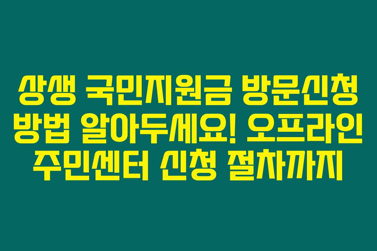 코로나로 힘든 시기를 보내고 있는 국민이라면, 상생 국민지원금에 대한 소식이 정말 반가운 소식 아닐까요? 하지만 온라인 신청이 어려운 분들에게는 오프라인 주민센터로 직접 방문신청을 해야 하는데요. 방문신청 방법과 필요한 서류에 대해 꼭 확인해보세요. 아래를 읽어보시면 이 지원금을 받을 수 있는 빠르고 간편한 방법이 제시되고 있답니다.
