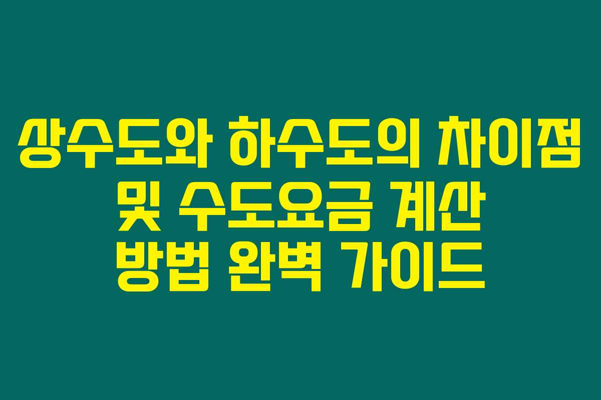 수도요금을 계산할 때 상수도와 하수도의 차이를 제대로 이해하고 계신가요? 수도요금 고지서를 받을 때 상수도와 하수도가 구분되어 나오는 이유를 모르시는 분들이 많을 텐데요. 만약 여러분이 수도요금을 아끼고 싶다면 꼭 이 내용을 확인해야 해요. 아래를 읽어보시면 상수도와 하수도의 차이점 그리고 수도요금 계산 방법에 대해 자세히 알아볼 수 있을 거예요.