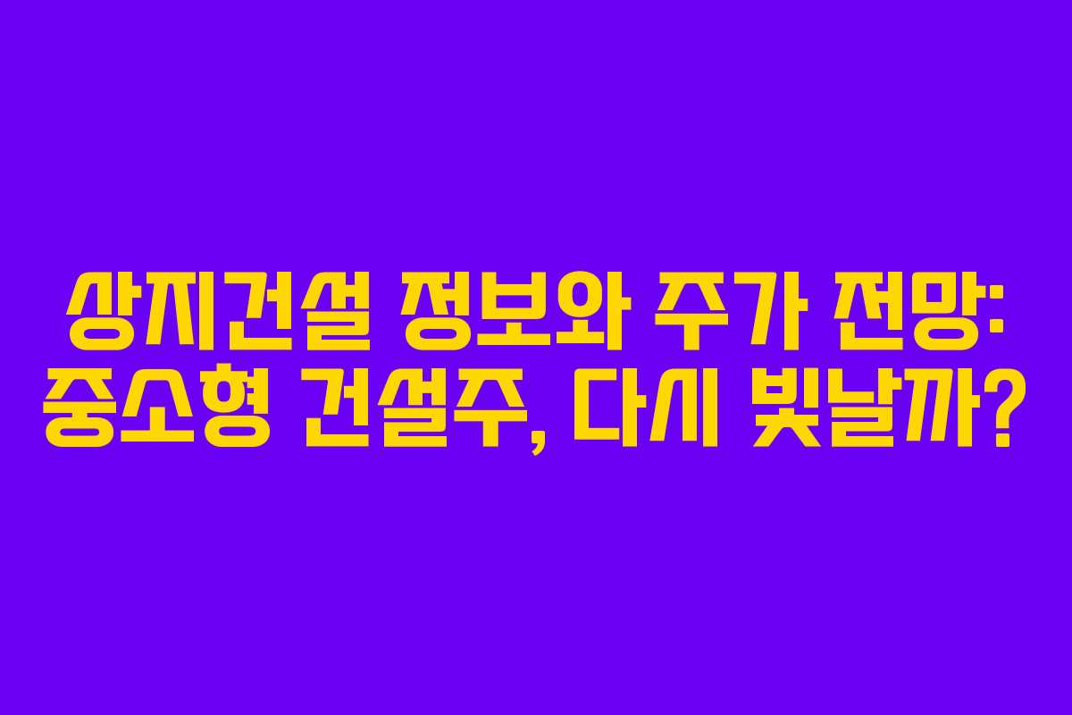 최근 부동산 관련주가 다시 주목받고 있습니다. 이는 정부의 재건축 규제 완화, 금리 인하 기대감, 공급 부족 문제 등이 맞물리면서 건설 섹터에 대한 관심이 증가하고 있기 때문입니다. 이 가운데 상지건설은 중소형 건설주로서 반등 가능성을 보여주고 있습니다. 이번 글에서는 상지건설의 기업 정보와 2025년 주가 전망을 살펴보겠습니다.