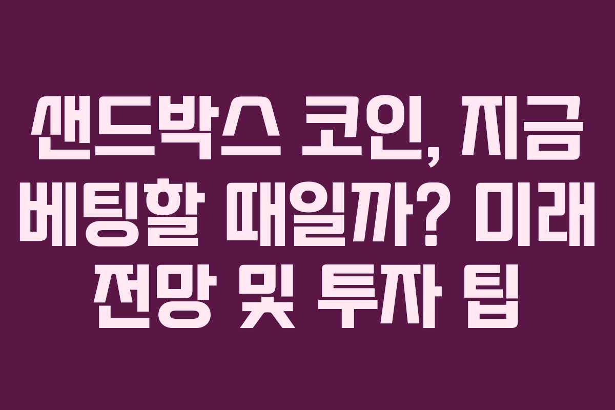 최근 메타버스의 열풍과 함께 주목받고 있는 샌드박스 코인(SAND)에 대한 관심이 높아지고 있습니다. 이 글에서는 샌드박스 코인의 현재 가치, 미래 전망, 그리고 투자 팁에 대해 자세히 분석해 보겠습니다.