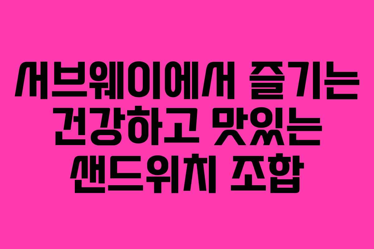 서브웨이는 전 세계적으로 사랑받는 샌드위치 브랜드로, 개인의 취향에 맞게 다양한 재료와 소스를 조합하여 나만의 메뉴를 만들 수 있는 곳입니다. 특히 한국에서는 건강한 식단을 선호하는 사람들에게 큰 인기를 끌고 있으며, 연예인들의 레시피와 다이어트 적합한 조합들이 많은 화제를 모으고 있습니다. 이번 글에서는 서브웨이의 인기 메뉴 조합과 꿀팁을 소개하여 샌드위치를 더욱 맛있고 건강하게 즐길 수 있는 방법을 알아보겠습니다.