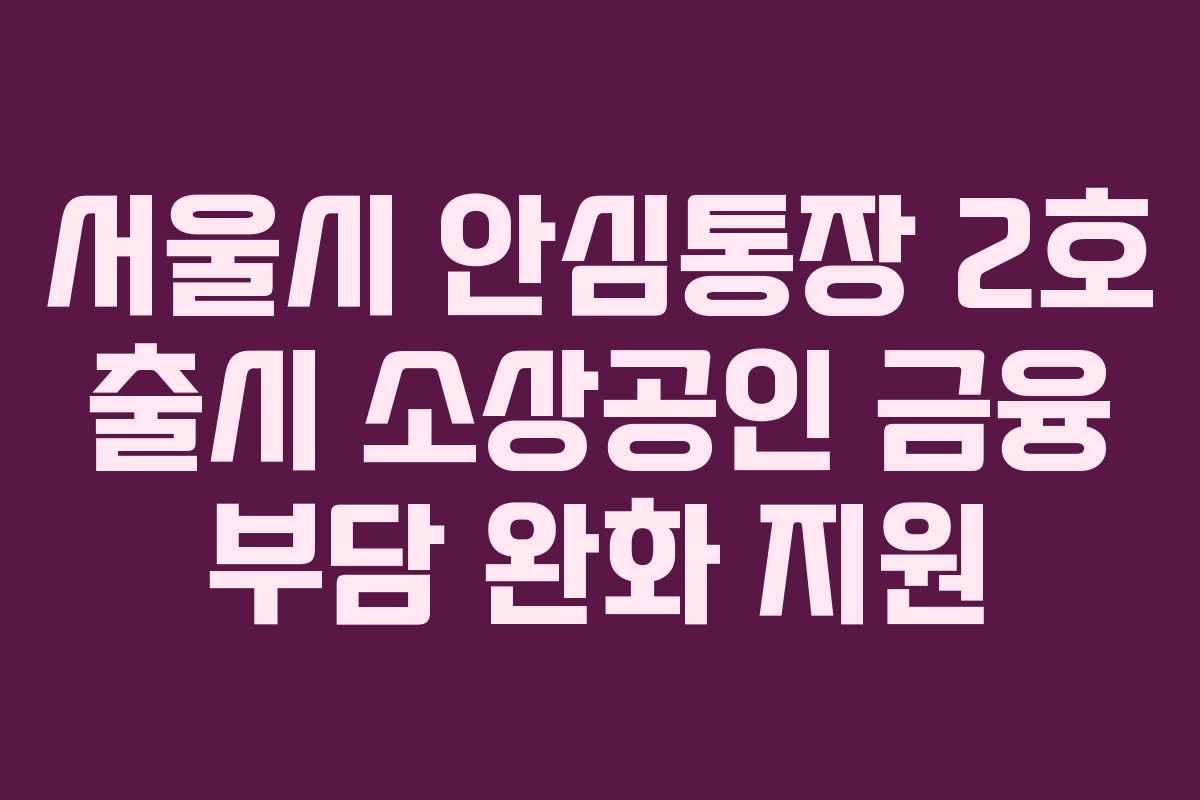 서울시는 자영업자와 소상공인을 위한 새로운 금융 지원책으로 ‘안심통장 2호’를 오는 8월 28일 출시합니다. 이번 통장은 이전에 출시된 ‘안심통장 1호’의 성공을 이어받아 자영업자의 금융 부담을 경감하고 제도권 금융 이용을 확대하는 데 중점을 두고 있습니다.